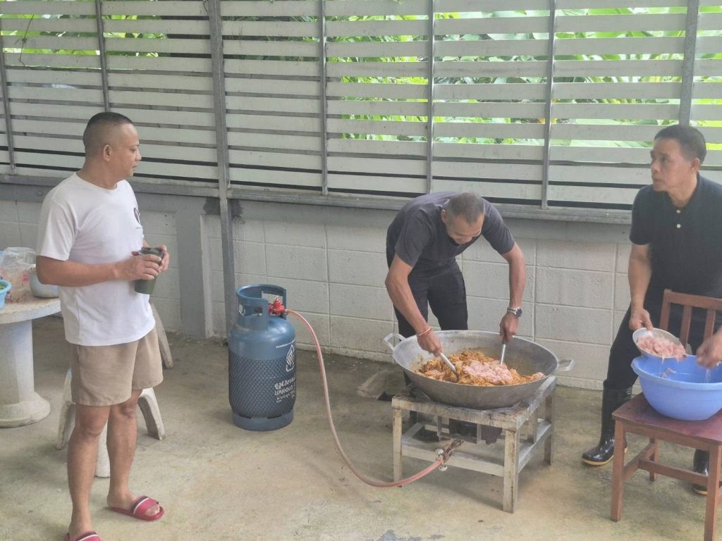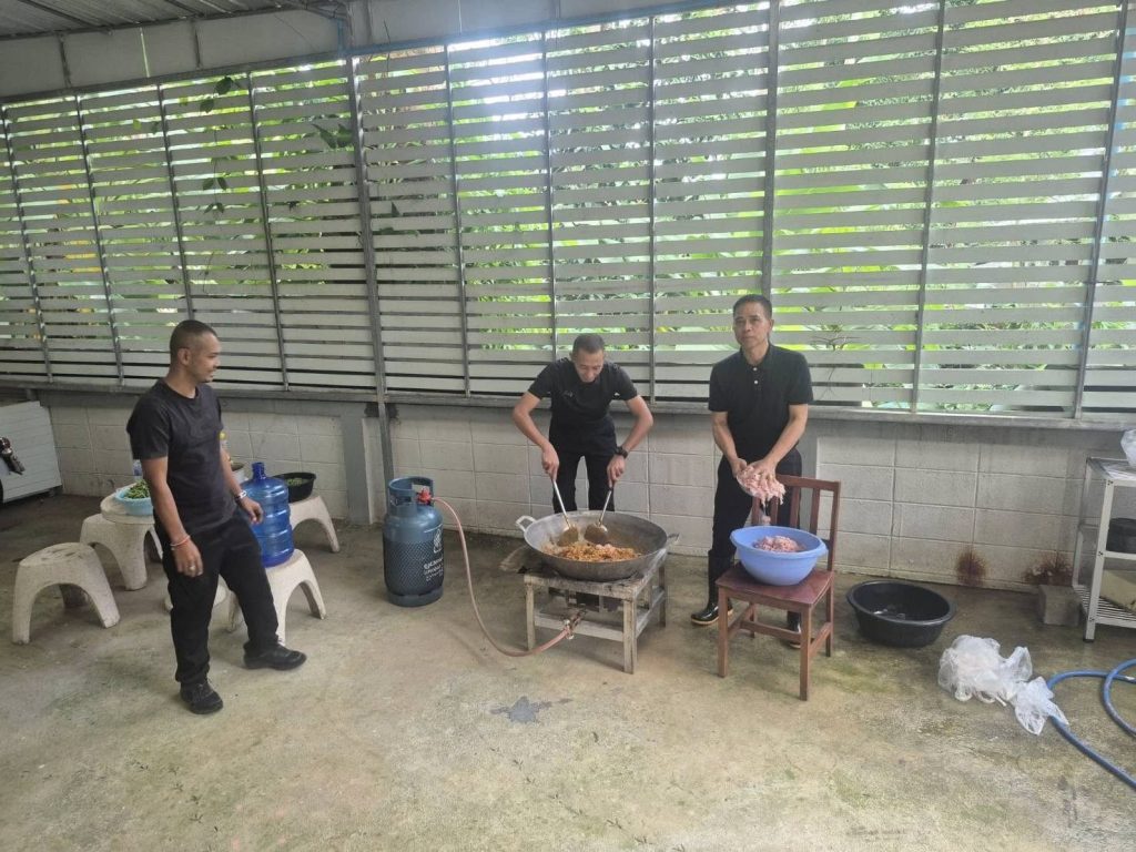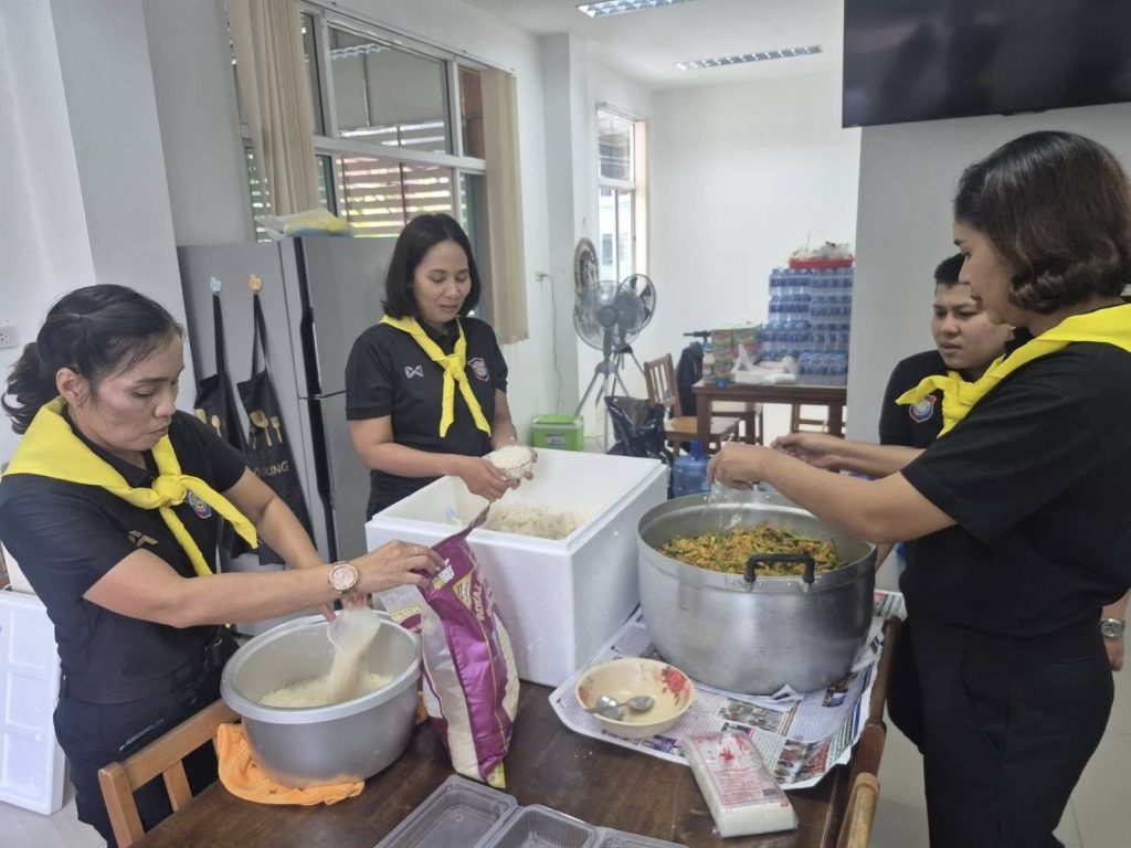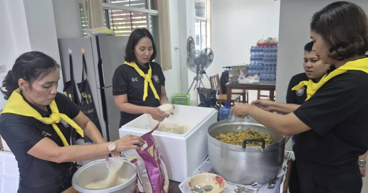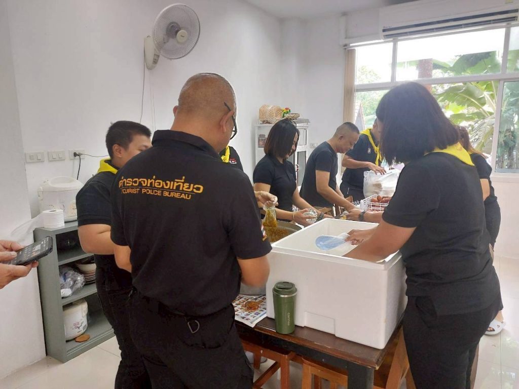 ข้าราชการตำรวจท่องเที่ยวตรัง-พัทลุช่วยกันปรุงอาหาร นำไปแจกจ่ายให้กับผู้ประสบอุทกภัย วันที่ 27 พฤศจิกายน 2568