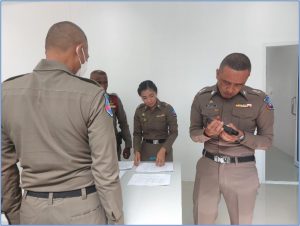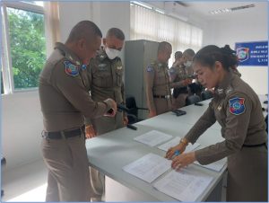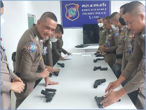 พ.ต.ต.ดุสิทธิ์ วรรณบวร สว.ส.ทท.2 กก.3 บก.ทท.3 ตรวจอาวุธปืน เจ้าหน้าที่ในสังกัด