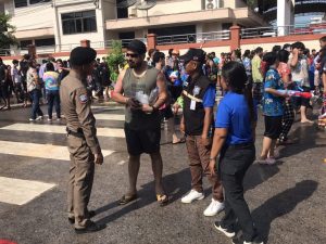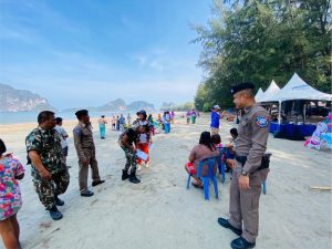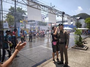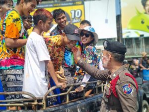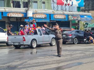 พ.ต.ต.ดุสิทธิ์ วรรณบวร สว.ส.ทท.2ฯ พร้อมด้วยข้าราชการตำรวจออกตรวจ อำนวยความสะดวกด้านการจราจรและดูแลความปลอดภัยให้กับนักท่องเที่ยวที่มาเล่นน้ำในช่วงเทศกาลสงกรานต์ 2567 บริเวณพื้นที่เล่นน้ำสงกราน