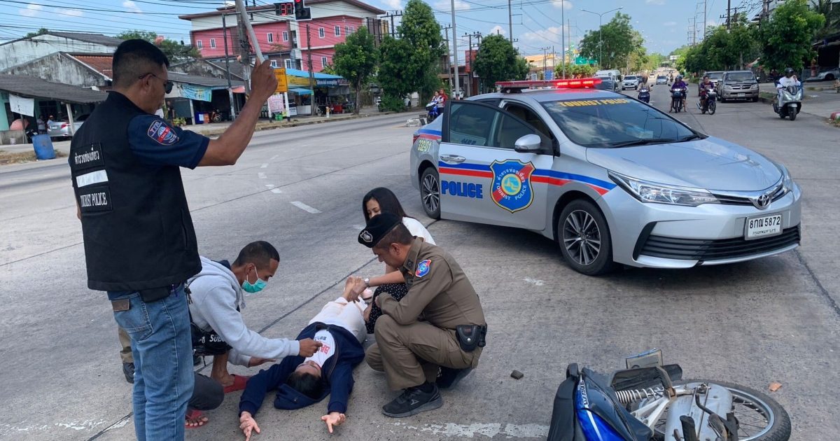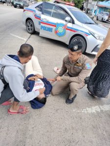 พบเจออุบัติเหตุ จึงปิดกั้นการจราจร ป้องกันเหตุซ้ำซ้อน ประสานรถพยาบาลนำผู้บาดเจ็บส่ง รพ.