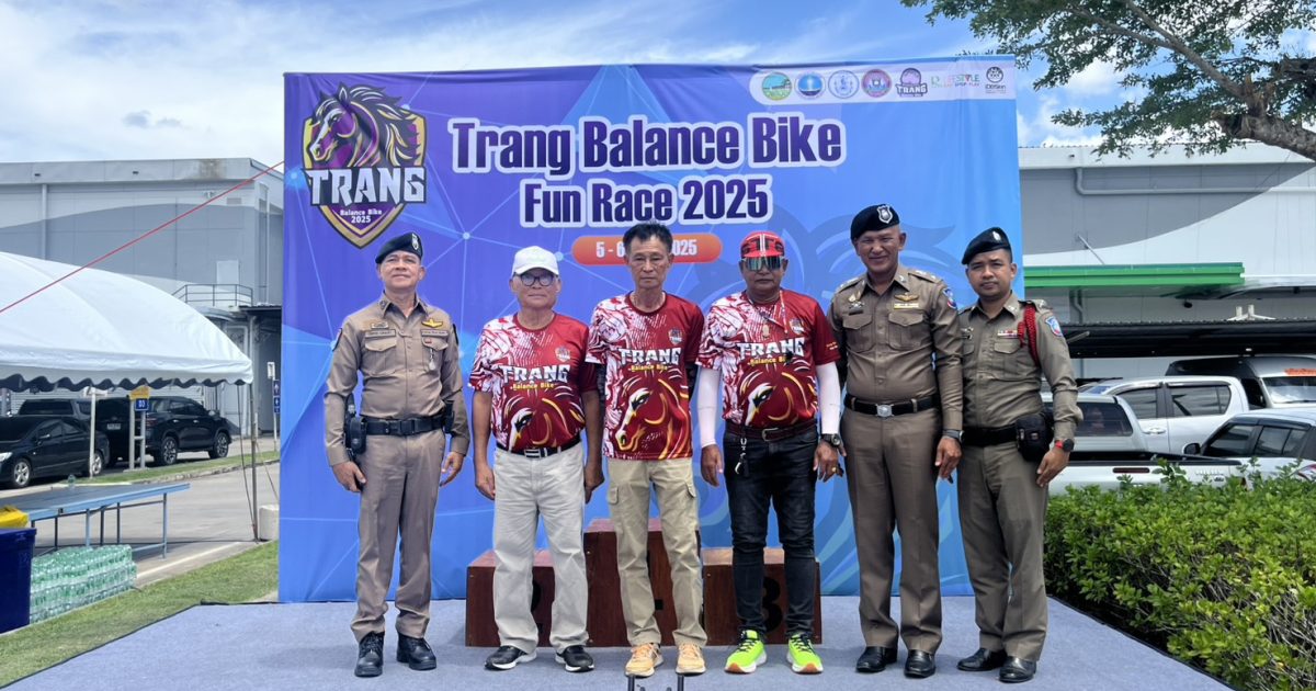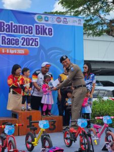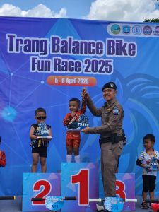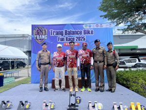 พ.ต.ท. ศักรินทร์ อนุสามัญสกุล รอง ผกก.3 บก.ทท.3 พร้อมด้วย ร.ต.อ. ปิยกาย แสงแก้ว รอง สว.(ป) ส.ทท.2 กก.3 บก.ทท.3 และ สายตรวจเขต1 ส.ทท.ตรัง ร่วมกิจกรรมในงาน Trang Balance Bike Fun Race 2025 พร้อมทั้งมอบรางวัลแก่ผู้ชนะการแข่งขัน ณ ลานจอดรถห้างสรรพสินค้าโรบินสันตรัง ต.ทับเที่ยง อ.เมือง จ.ตรัง